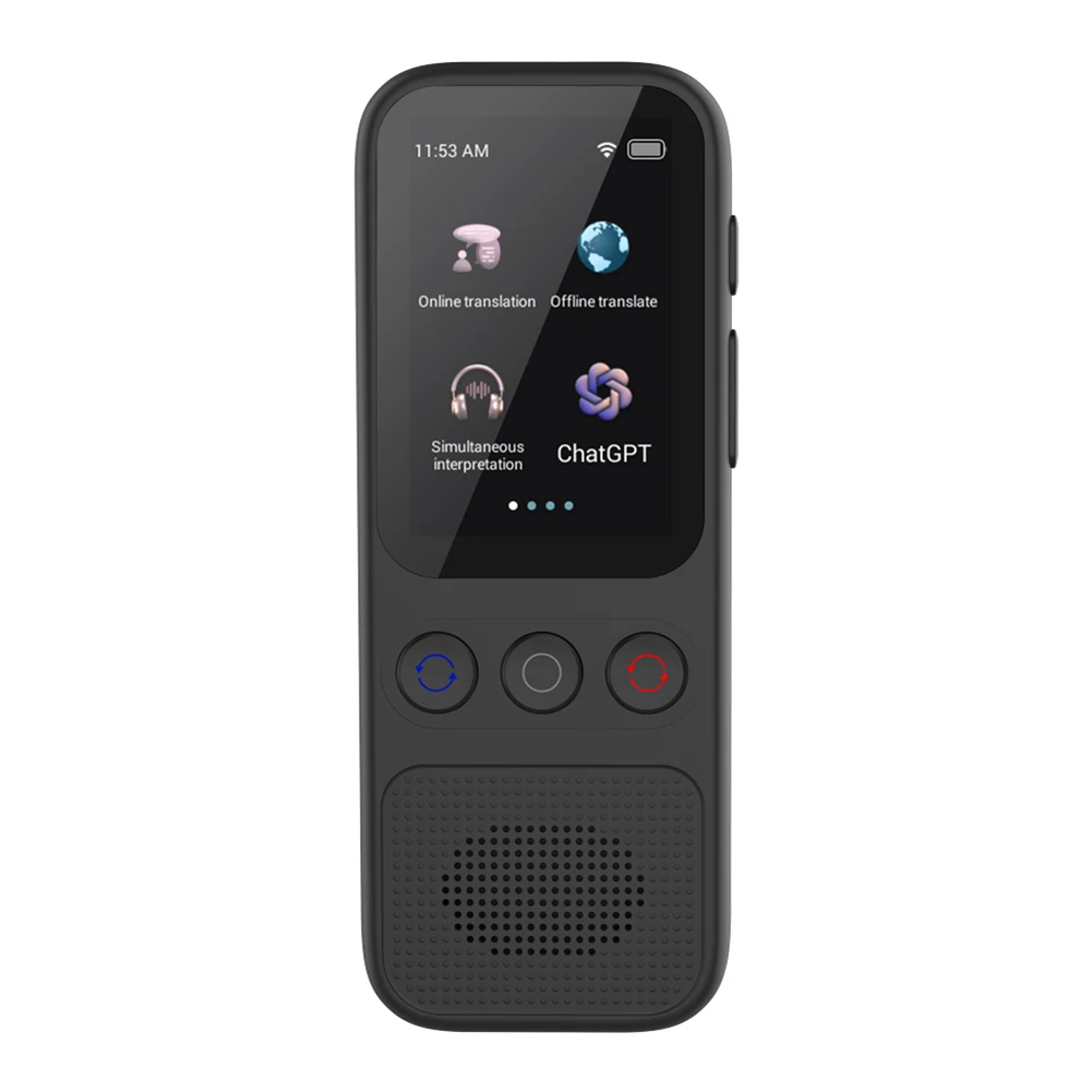 Dispositif de traduction de langue avec écran d’affichage proposant plus de 138 langues pour la traduction vocale en ligne, notamment l’allemand, le russe, le français, le coréen, le japonais, le thaï, l’espagnol, l’anglais, le chinois traditionnel et simplifié, le portugais et le Vietnamien.