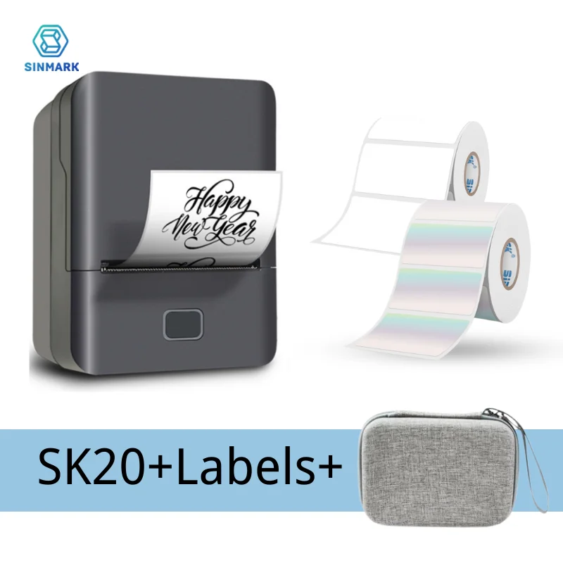SINMARK – imprimante thermique Portable avec boîte, imprimante d’étiquettes auto-adhésives, petit Mini marqueur autocollant Bluetooth, imprimante Photo, cadeau